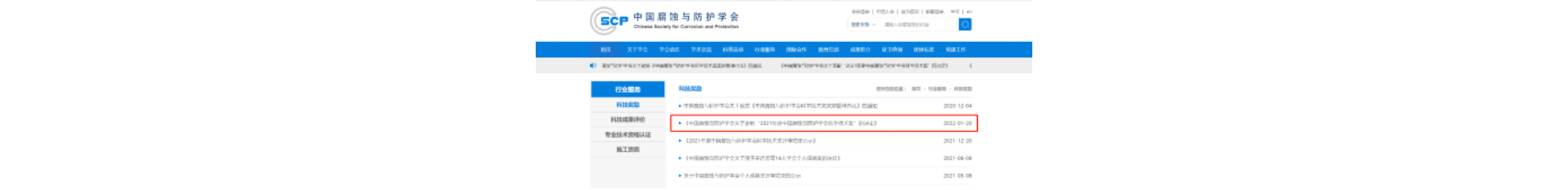 2022年1月20日,中国腐蚀与防护行业最具权威性机构——中国腐蚀与防护学会发布了2021年度“中国腐蚀与防护学会科学技术奖”的获奖名单。由国家科学技术奖励办公室批准设立的“中国腐蚀与防护学会科学技术奖”每年评选一次,以表彰为中国腐蚀与防护行业做出突出贡献的组织机构和杰出专家。