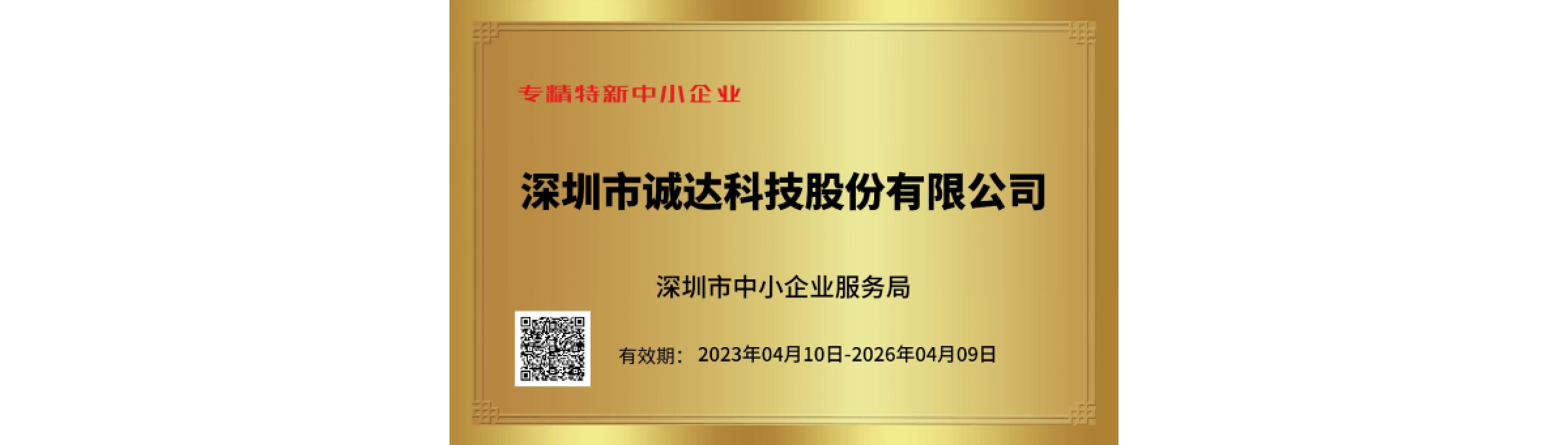 2023年4月15日,深圳市工业和信息化部发布了2022年深圳市专精特新中小企业名单。诚达科技在遴选中脱颖而出,获批通过了2022年深圳市专精特新中小企业认定。